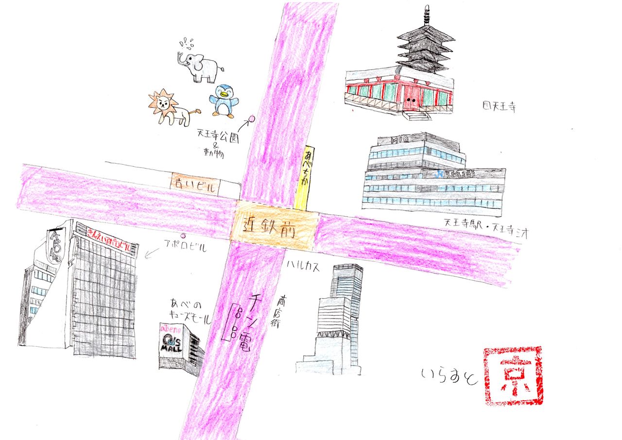 (写真中央、四天王寺です)